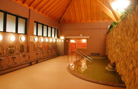 「金の湯」からさらに坂道を上がっていくと、「銀の湯」です。炭酸泉とラジウム泉が楽しめる無色透明の温泉です。「金の湯」と「銀の湯」の2館券があり入浴料が割安になるようなので、ぜひ2つの外湯を体験してください。