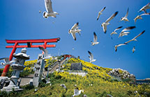 島の頂に鎮座する蕪嶋神社は、弁財天を祀り、漁業安全や商売繁盛、芸能などにご利益があるとして、古くから八戸の人たちに親しまれてきました。ウミネコは、漁場を教えてくれる弁財天の使い。「ウン」をつけられたらラッキーかも?