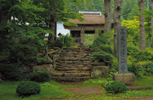 黒森山の中腹にある浄仙寺。森に囲まれた静かな境内は泉水の名所です。また、森の中には郷土の生んだ文人の文学碑が数多くあり、文学の森と称されています。