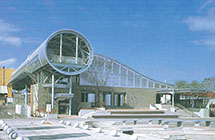 駅舎は「1996グッドデザイン賞」を受賞した建築物。大きな筒状の展望デッキが併設され、町の景観を眺めることができます。広場では、各種イベントが開催され、賑わいを見せます。