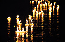 140年以上の歴史を持つ伝統の祭りです。僧侶の読経と灯ろう流しを中心に、打上花火、民踊流し、舞台芸能などの催しが赤岩地区の利根川河川敷で行われます。静かに流れていく灯ろうの灯が水面に揺れ、利根川に向け打ち上がる水上スターマインなど多彩な花火が夏の夜空を彩り、訪れた人々の心を魅了します。