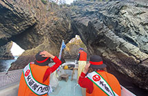 碁石岬や乱曝谷、雷岩など、碁石海岸の絶景ポイントを小型漁船でめぐる爽快アドベンチャーで、クライマックスの穴通磯をくぐり抜ける瞬間は大迫力です。