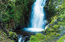 落差15メートルの滝。夏でも滝周辺はひんやりとして過ごしやすいスポットです。