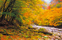 剣山国定公園の物部川源流域にある渓谷で、長い年月を経て侵食された石灰岩が空に向かってそそり立ち、山一面が色鮮やかに染まる秋の美しさは格別です。紅葉の名所として有名で、「屏風岩」は見所。