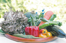 南小国の美しい環境で育った新鮮なお米や野菜。高い標高が生む昼夜の寒暖差が甘味のある農産物を育てます。お米ではあきげしき、野菜ではきゅうりやほうれん草が多く生産されています。