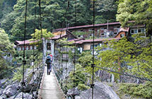 大杉谷登山道の中間に位置する山小屋です。ヒノキ風呂のほか、夏は渓流で水浴びも楽しめます。