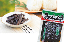 フキを大釜で煮詰めてつくる佃煮で、四種類の味があります。ご飯のお供に。