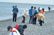 ヒスイ海岸の愛称で親しまれている海岸で、ヒスイを探して散歩している方も多くいます。