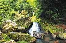 森の間から自然に湧きだす清水がいくつもの滝をつくって盛夏でも涼しい場所です。
