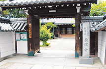 天正4年(1576)に創建された浄土真宗大谷派の寺院で、戦国時代には真鍋氏の居城「真鍋城」であったと伝えられています。本堂外陣の左手には、17世紀後半から18世紀初期のものと思われる花鳥図を描いた華麗な襖絵4面があります。
