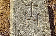 田原城主の菩提寺である千光寺跡から出土したもので、墓碑の人物は宣教師ルイス・フロイスの書簡にも記述のある、『田原礼幡(レイマン)』です。現在確認されている日本最古のキリシタン墓碑で、考古資料と文献史料に登場する人物とが一致した数少ない事例として大変重要な歴史資料です。墓碑は歴史民俗資料館で常設展示しています。