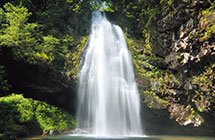 落差40メートルの雄滝と30メートルの雌滝からなる龍頭が滝は、中国地方随一の名瀑といわれ、八重滝とともに「日本の滝百選」に選定されています。激しくしぶきを飛び散らせながら流れ落ちる滝は、まさにうねりをあげて昇天する龍のようです。