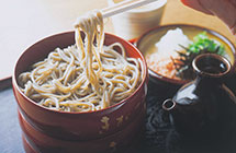 そばの実をまるごと製粉する「挽ぐるみ製法」により、香が高い黒い麺が特徴です。