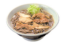 ルーツは諸説ありますが、お酒のシメに馬肉の煮込みをそばにかけて食べていたことがはじまりと言われています。戦後には鶏肉がのった冷たいつゆで食べるスタイルが定着しました。今では遠くから食べに訪れる人も多い町の名物です。