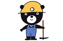 鉱太君 尾去沢の山に住む小熊の鉱太君。青いオーバーオールに黄色い安全ヘルメットがトレードマーク! |